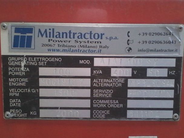 GRUPPO ELETTROGENO 100 KVA